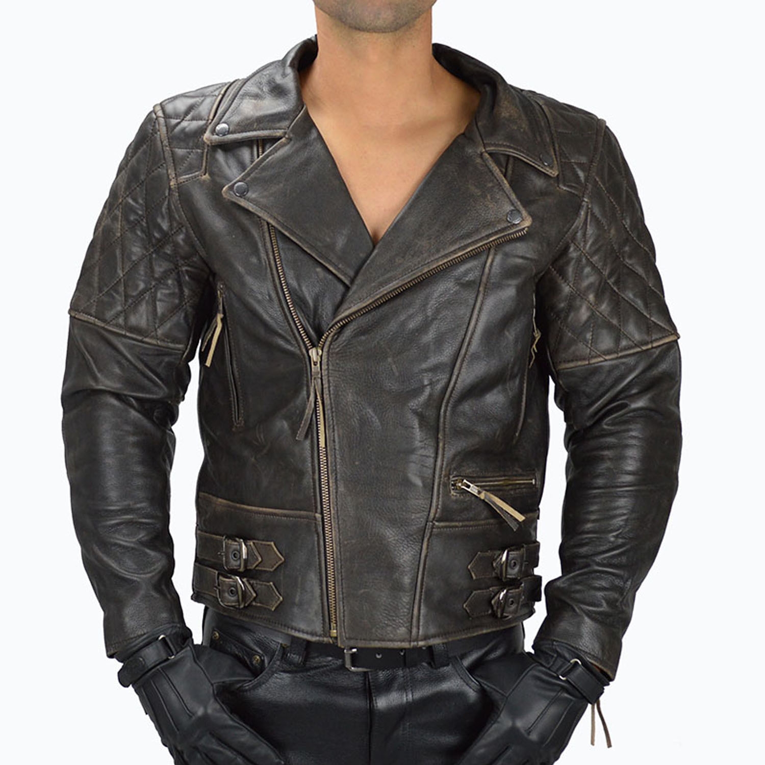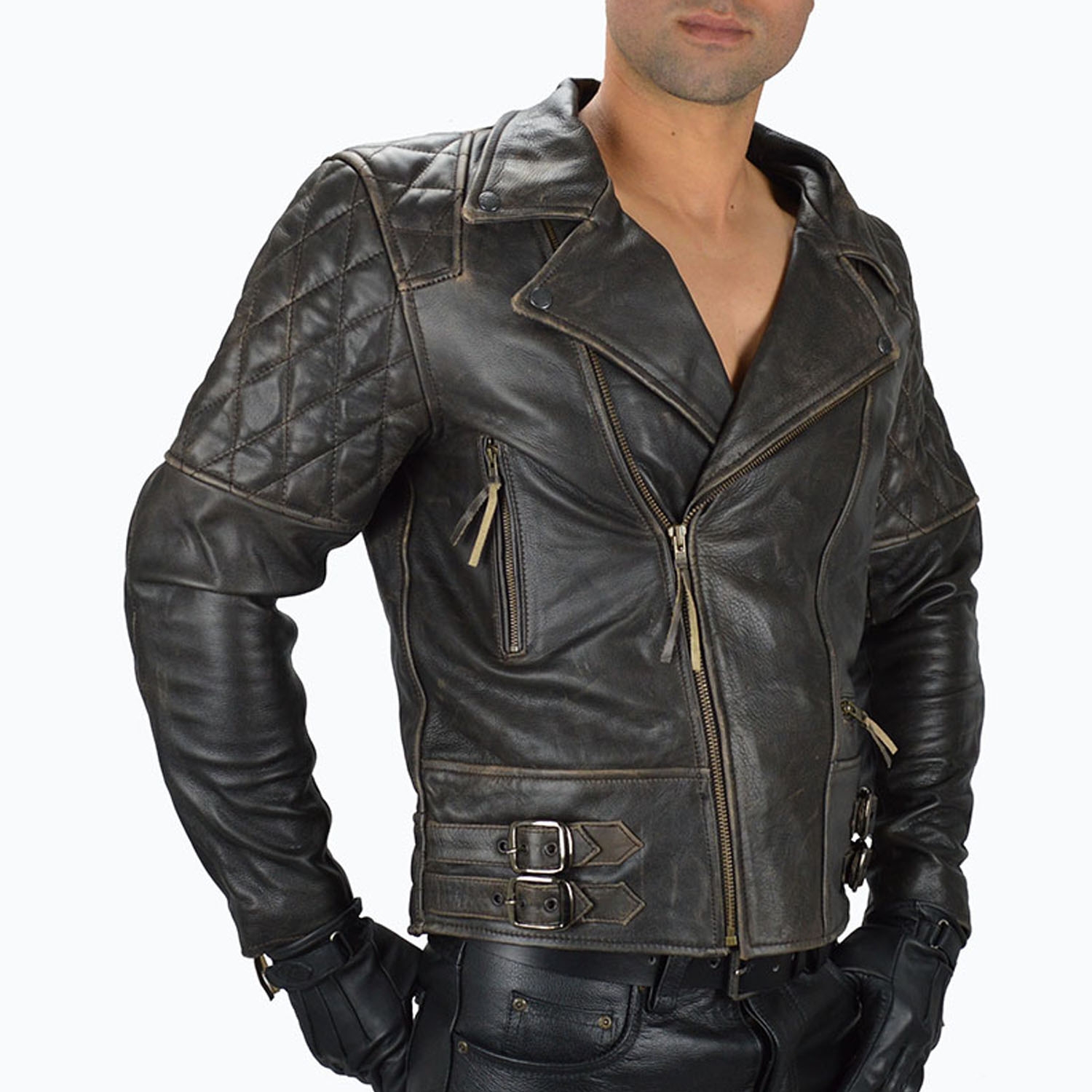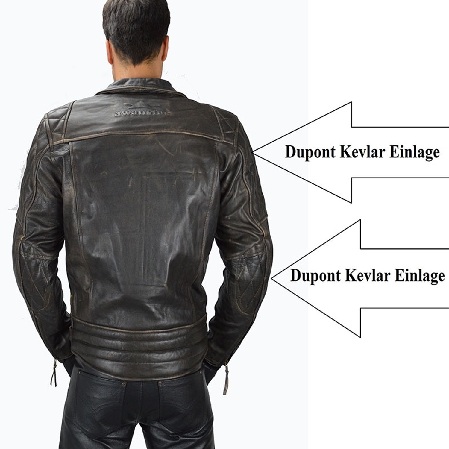Quilted leather Patchwork on Elbow and Shoulder with cut-resistant insets of DuPont Kevlar